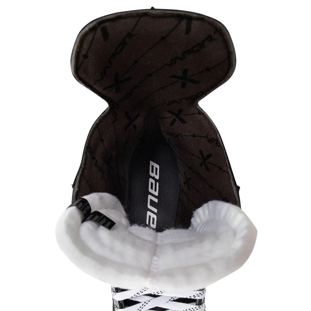 The tongue is constructed of Bauer’s 40-ounce felt tongue with metatarsal guards. This setup provides players with a highly comfortable and protective fit and feel! - Moving to the interior of the Vapor X3.5 Hockey Skates, they feature a microfiber liner. This liner is specifically designed to keep players feet dry and comfortable by working to wick away moisture. Paired with this liner are the memory foam pads within the ankles of the boot. This foam delivers premium thermoformability, good comfort and durability, and an improved fit!