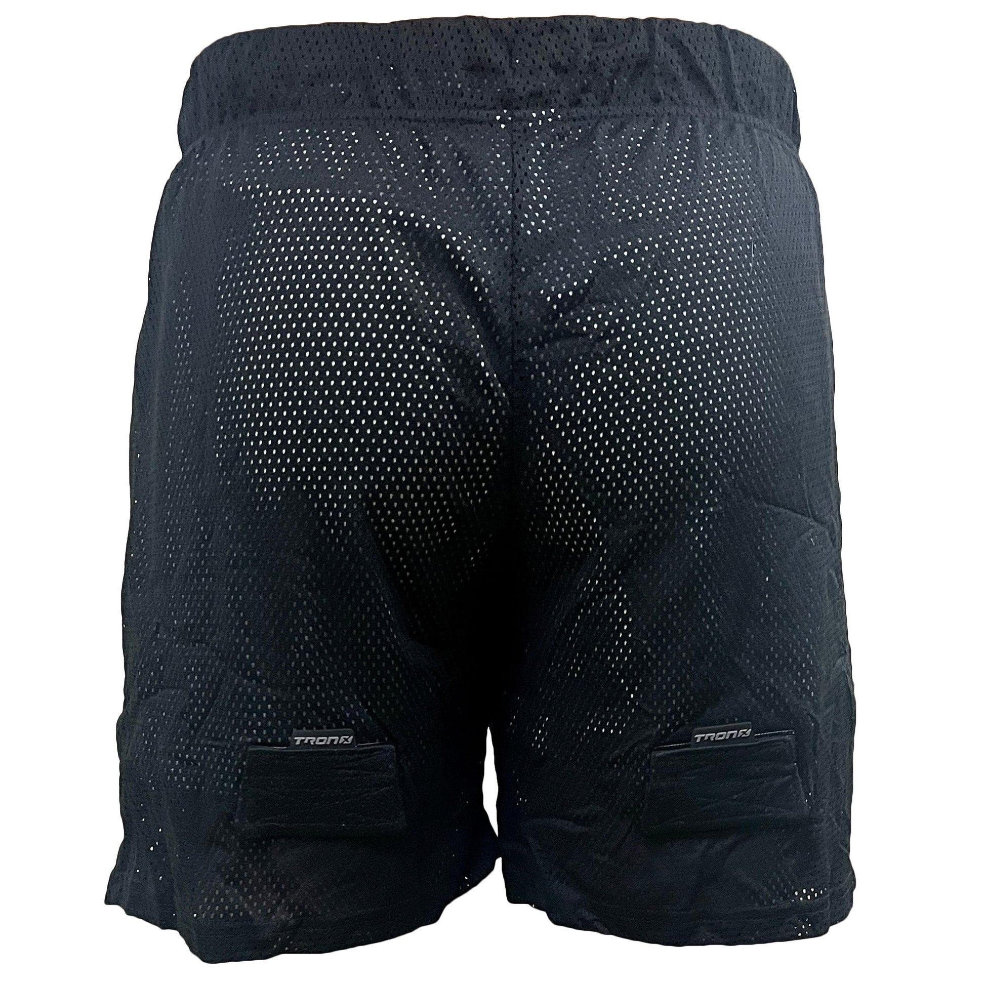 - TronX included a cup for great protection and built the Mesh Shorts with a comfortable elastic waistband and skate lace drawstring closure so players can stay comfortable and secure. Plus, reinforced sock tabs were built to firmly hold up your hockey socks all game long.